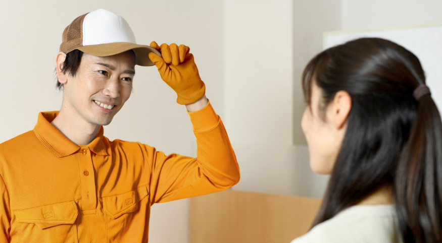 現在は、2tトラックで、個人宅へ家具を入れ込む仕事を担当しています。今は、クリニックやオフィスなどの法人への配送が多く、家具の開梱、設置、ゴミのまとめ・清掃など一件にかかる所要時間は約2時間半。2人一組で、1日3件の配送を行なっています。私が仕事をする上で大切にしていることは、接客業としての自覚。私たちはお客様と直接お会いする、いわば「タスコの代表」ですからね。お客様に不快な思いをさせないよう、身だしなみや言葉遣いには気を遣っています。また、清潔感を感じていただけるよう、伺う前には必ず車輌の汚れがないかもチェックしています。